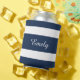 Modern Blue Stripes Name Can Cooler
