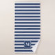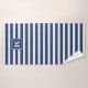 Monogram Navy Blue and White Striped Pattern Bath Towel Set
