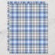 This scrapbook paper features a colorful tartan (plaid) pattern in white, blue, and brownish grey (taupe) color.