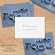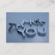 Business size cards that say "Thank You" in 3D silvery blue text on one side, and on the reverse you can type your own message or remove the text to have none.