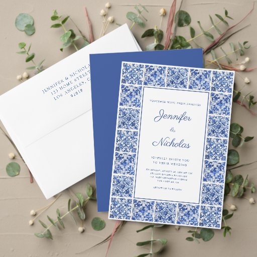 Modern Blue Tiles Wedding Reception Enclosure Card