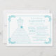 Unique modern bridal shower invitation featuring a turquoise blue bride gown on a hanger framed with a beautiful elegant flourish leaf frame set on a white background. The wedding gown has the words "here comes the bride" written on it and a flower on the waist. Flip the invitation over to find a matching turquoise blue color back for an extra special touch. Stylish and contemporary, with a touch of vintage pretty bride gown invitation is available in our shop in other popular color combinations.