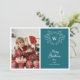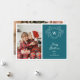 Modern blue & white classy crest 2 photos holiday card
