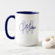 Modern Blue White Custom Name Cursive Monogram Mug