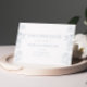 The matter paper is our sample of choice -- it's a reasonably priced, good quality, nice feeling paper stock. We were a little concerned the muted rustic blues might not reproduce all that well (usually by light colored samples), but they're just gorgeous! The white lettering is perfect in combination with the blue background, and the typography is all easy to read.