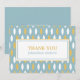 Simple and elegant, these personalized thank you cards are the perfect way to send your heartfelt thanks to friends and family for attending your son's bar mitzvah. The design features a modern blue, white and gold teardrop pattern on the front with gold and blue typography can be changed to fit your celebration needs. The back features a matching blue background and white text fields that can be customized.