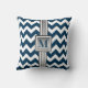 Modern Blue White Grey Monogrammed Chevron Throw Pillow