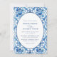 Modern Blue White Mediterranean Watercolor Wedding Invitation