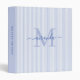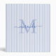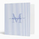 Modern Blue & White Stripes Monogram Name 3 Ring Binder