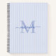 Write in style with this elegant personalized notebook, designed to add a chic touch to everyday notes, journaling, or planning. Featuring a soft blue and white striped background, the cover is customized with your monogram initial and name in a fancy script font, creating a timeless and feminine stationery essential.