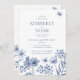 Plain white envelopes are included with paper invitations and will come to fit the invitation size you select. If you don’t need the envelopes, you may choose to not receive them by selecting the dropdown below "Envelopes" and choosing "None." If you’d like to have a design on your envelopes, you can browse all of these available envelopes to find the design that complements your Dusty Blue Watercolor Floral Modern Wedding Invitation.