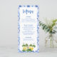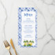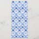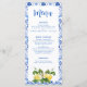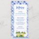 Mostly blue and white Mediterranean tile and lemon menu with blue text.