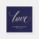 These simple, romantic napkins say "love" in a modern blush pink calligraphy style, on a navy blue background. Personalize with your names and wedding date.