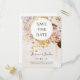 This modern blush floral marble save the date postcard is perfect for your elegant boho luxury rose gold, sage green, blush pink wedding. Design features a gold foil frame or bouquet with rustic red peach spring peony, a classic whimsical watercolor succulent flower, greenery including fern and eucalyptus, with appearances of a vintage dusty rose and ivory butterfly. Other flowers include hydrangea, dahlia, and rose. The design is ideal for a classy, creative botanical fall, spring, summer, winter, retro bohemian wedding. Please feel free to contact us with any questions regarding the product's design; cheers!