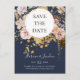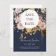 Modern Blush Floral Navy Save The Date Postcard
