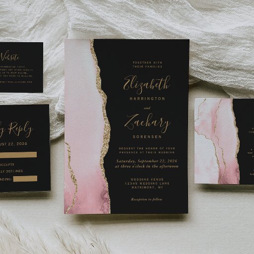 Blush Pink Gold Agate Dark Wedding SuiteDesigned by Akhates Designs