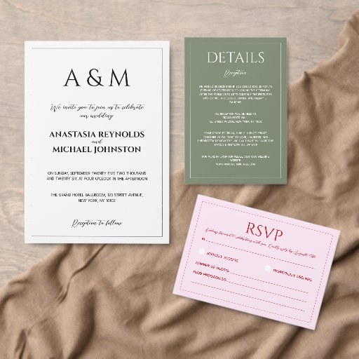 Modern blush pink and red minimalist wedding envelope