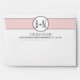 Modern blush pink band with initials wedding envelope. The flap of the envelope showcases a blush pink band with the couple's initials, creating a beautiful focal point. Opening the envelope reveals a stunning geometric pattern of white crosses on a pink background, adding a touch of elegance and sophistication to the design.