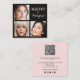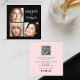 Blush pink business card with black typography and elegant script. Update qr code with your website, edit social media icons for your business and add 3 unique photos for your business. Message the designer for more customization options.