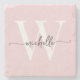 Modern Blush Pink Custom Monogram Name Script Stone Coaster
