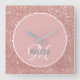 Modern blush pink glitter script monogram name lar square wall clock