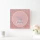 Modern wall clock with a blush pink glitter background, a white script monogram and gray name. Personalize with your initial and name.