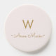 A modern, elegant monogram design with gold handwritten minimalist script typography and sans serif block typography on an elegant pale pastel blush pink background. The monogram and name can be easily personalized.
