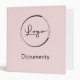 Modern Blush Pink Minimalist Logo Professional 3 Ring Binder