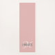 Girly blush pink yoga mat with a white script monogram and a gray name Personalize with your name and initial.