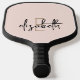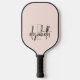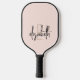 Show off your modern style with this unique black, blush pink and gold monogrammed pickleball paddle. Personalize it with your name in script for a one-of-a-kind accessory that's sure to make you stand out on the court. Add some style to your game with this personalized monogrammed pickleball paddle.