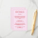 Create a chic and timeless wedding with this modern, minimalist details enclosure card in blush pink and red color. Its clean design, elegant typography, and elegant color theme make it perfect for couples who want a simple, minimal and stylish look. Simple yet refined, this invitation sets the tone for a memorable, classy wedding. Perfect for sharing important wedding details while keeping a modern, stylish, and classic look.