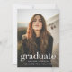 Celebrate your milestone with these simple and elegant graduation announcements, featuring your vertical photo with "graduate" displayed in sleek white modern lettering. Customize the design by adding your name, school name, and graduation year for a personal touch. The back of the announcement showcases a stylish blush pink background with space for additional photos and text, perfect for sharing future plans or graduation party details. Ideal for high school and college graduates looking for a chic and timeless way to announce their achievement.