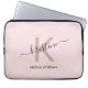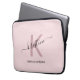 Modern blush pink script monogram name laptop sleeve