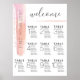 Simple, modern wedding seating chart with a blush pink brush stroke down the left side and welcome at the top. Easy to read and customize. Room to add at least two more guests to each table. Very economical way to show your guests to the right seat. Could be mounted on foam core board and placed on an easel. This poster matches other pieces in this wedding suite.