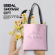 This modern blush pink tote bag features a cool handwritten font that can be personalised with the name of your bride.