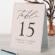 Trendy, minimalist wedding table number tent signs featuring black modern lettering with "Table" in modern calligraphy script. The design features a blush background or a color of your choice. The design repeats on the back. To order the table number tent signs: personalize with your names, wedding date, and table number. Add each number to your cart individually and check out when you're finished.