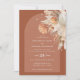 Modern bohemian terracotta pampas grass stylish wedding invitation card. Beautiful handprinted floral watercolors and script text. Modern on trend design.