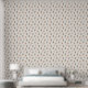 This fun wallpaper features a modern boho abstract shapes pattern (semicircles in light terracotta and dusty pink, along with leaf accents), over an off white background.
