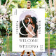 Modern boho arch 2 photos black and white wedding welcome sign, add your initials and the date. A cool simple and minimalist layout with a bohemian desert vibe. Perfect for casual outdoors weddings.