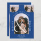Modern boho arch 4 photos wedding blue and white save the date. A cool simple and minimalist layout with a bohemian desert vibe. Perfect for casual outdoors weddings.