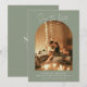 Modern Boho Arch Photo Sage Green Wedding Monogram Back Save the Date. Easily personalize by replacing each info. Please upload vertical/portrait photos. Make sure to check the preview before adding to cart. (Sample Photo by Jonathan Borba from Pexels)