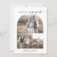 This modern boho arch proposal photo collage engagement announcement card makes the perfect simple announcement card. The bohemian black and white design features unique industrial lettering typography with minimalist chic style. Personalize the front of the card with 3 photos and your names. Include an additional photo, and your proposal story or announcement message on the back of the card.