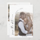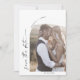 This modern boho arch QR code photo save the date card is perfect for a simple wedding. The bohemian black and white design features unique industrial lettering typography with minimalist vintage style.
