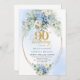 Modern Boho Blue Peony Gold 90th Birthday Invite