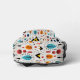 There's a fun boho style leaves pattern on this bag that is attractive for both kids and adults. Colors used include blue, gold, orange and dark navy on a white background. At the center is your triple monogram in black, which is placed on an oval banner lined in black and gold. Colorful!