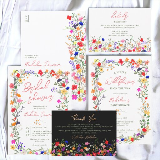 Modern boho bright wild flowers bridal welcome bohemian bridal shower welcome sign. Featuring pink, red, green, and purple hues botanical flowers inspired by wildflowers and watercolor rustic gardens with subtle greenery and modern boho script typography.