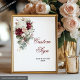 Welcome your guests with style and elegance using this boho wedding custom sign, featuring watercolor burgundy and white roses accented with shimmering gold leaves. Designed in a rich palette of burgundy, marsala, maroon, deep red, dark red, white, and gold, this floral custom sign or poster brings a romantic, boho-chic vibe to your wedding décor.