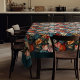 I am very pleased with this purchase. The quality is good, it is heavy and the image decorating it is brilliant and very eye-catching. When I first laid eyes on this tablecloth, still folded and in the transparent covering, it brought a smile to my face and I knew right away it was a good choice. A few days later my wife replaced our old tablecloth with this little gem and was quite satisfied. She noted that it is thick and fits the table very well with just enough hang over (although our dining table is extended by a traditional leaf which we keep in place even if we are not having guests over) and stays put instead of blowing all over the place. The image decorating this tablecloth is brilliant and very eye-catching. It looks even better than it appeared online.