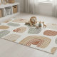 Ground your space with the organic warmth of this abstract rug pattern. The design features a collection of free-form, rounded shapes in a soothing palette of terracotta, sage green, muted brown, and tan, many filled with rhythmic, hand-drawn lines. Set against a textured, off-white background, these abstract forms create a sense of movement and natural harmony. This rug is a perfect centerpiece for a bohemian living room, a calming addition to a safari-themed playroom, or a stylish accent in a modern bedroom, adding a layer of comfort and contemporary artistry to your floor. Part of our coordinated 'Kid's Safari Decor' collection. Note: design adapted from generative content.