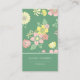 These contemporary business cards with colorful floral background in green, pink and yellow, are stylish and playful. The design includes a modern set of fonts in matching green and ivory background at the back. Make a lasting impression with these playful and chic retro vibe cards.